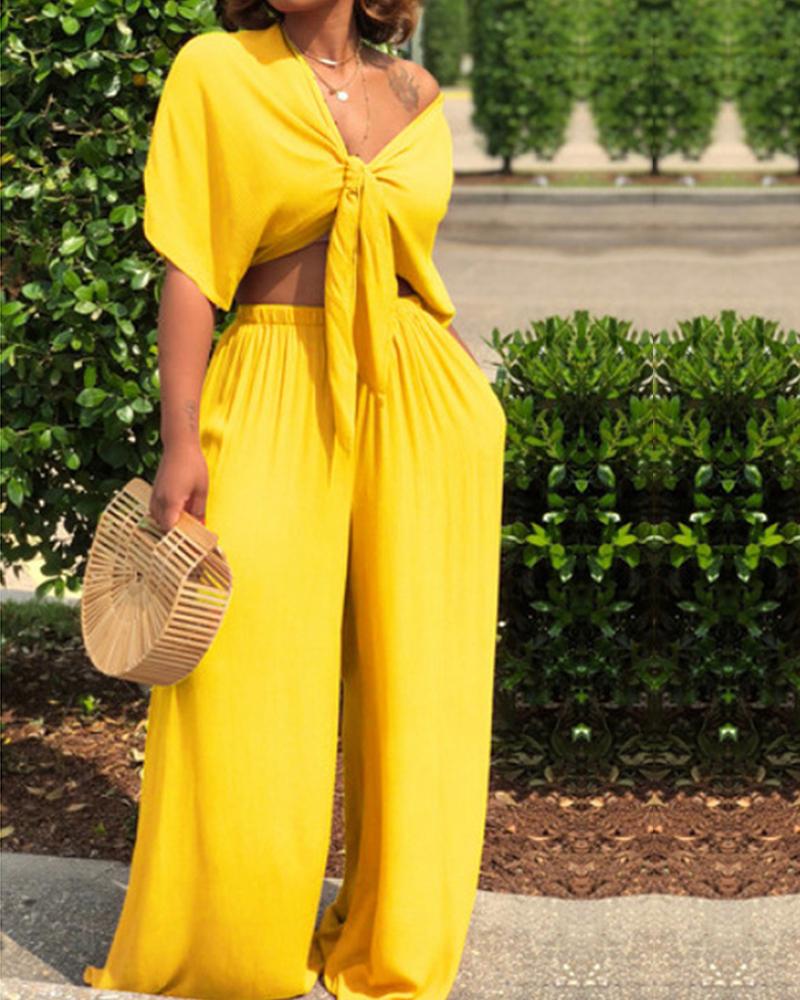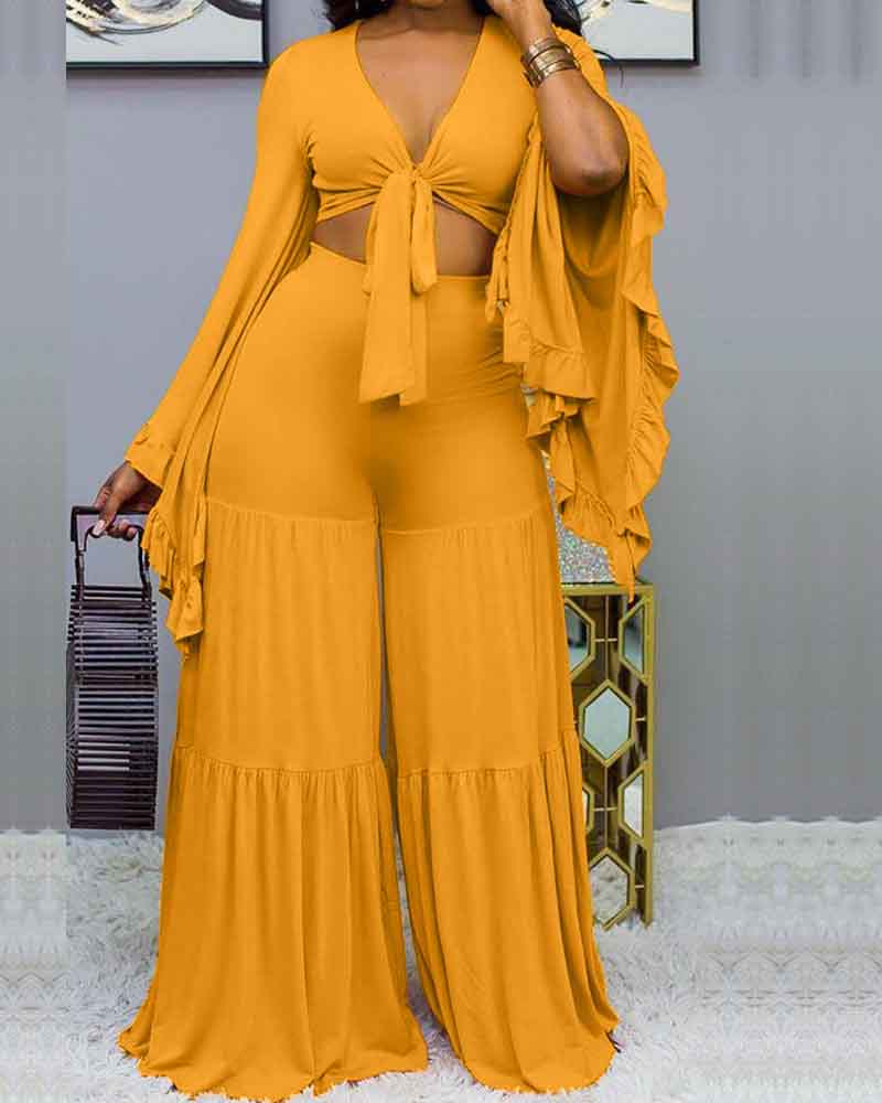 🌹 Two-piece Suit of Solid Color Ruffled Flared Sleeve Pants测试