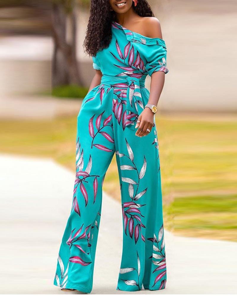 🌹 One-shoulder Printed Short-sleeved Jumpsuit测试