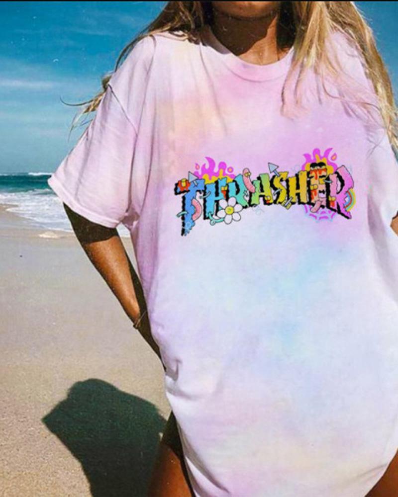 🌹 Fashion Print Tie-dye Long T-shirt测试